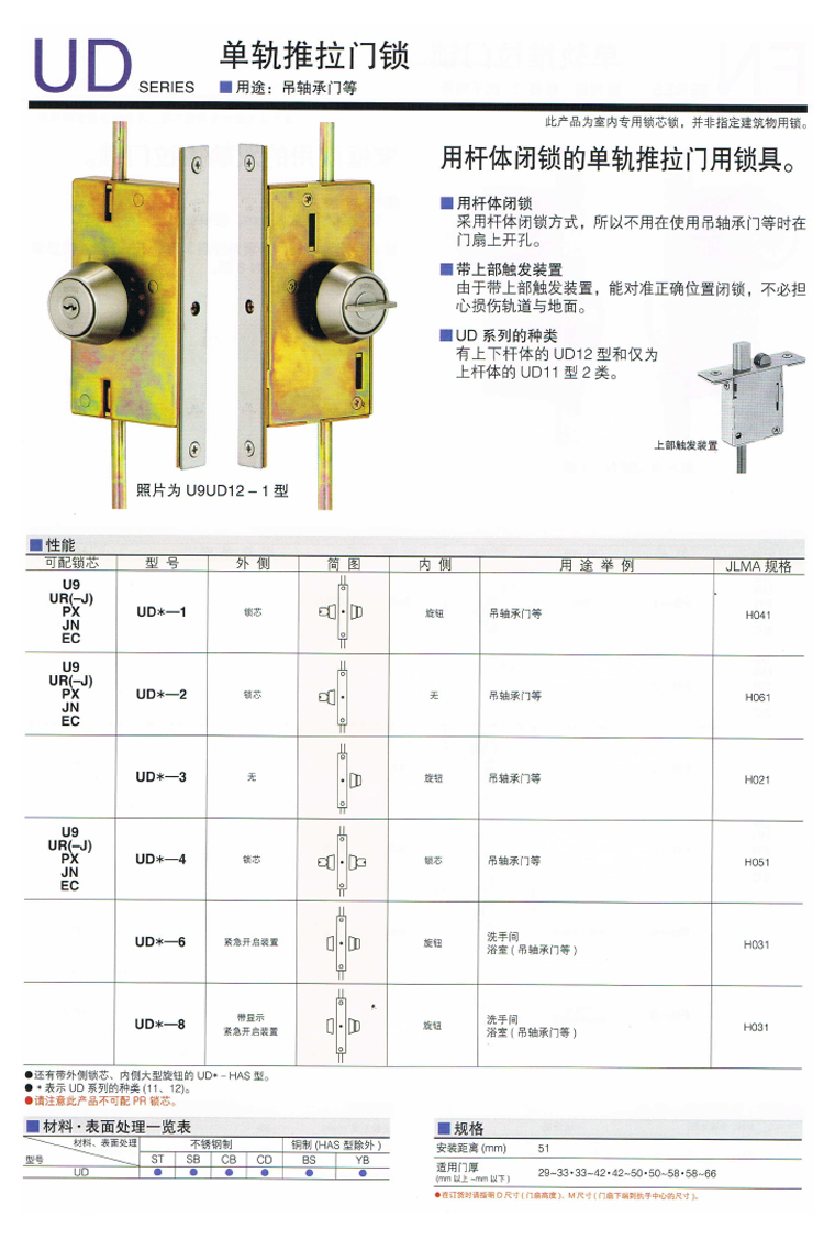 UD系列單軌推拉門鎖