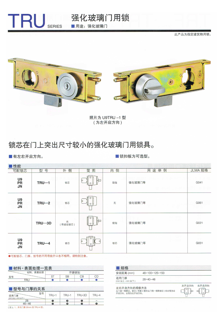 日本美和鎖具 TRU系列強(qiáng)化玻璃門鎖